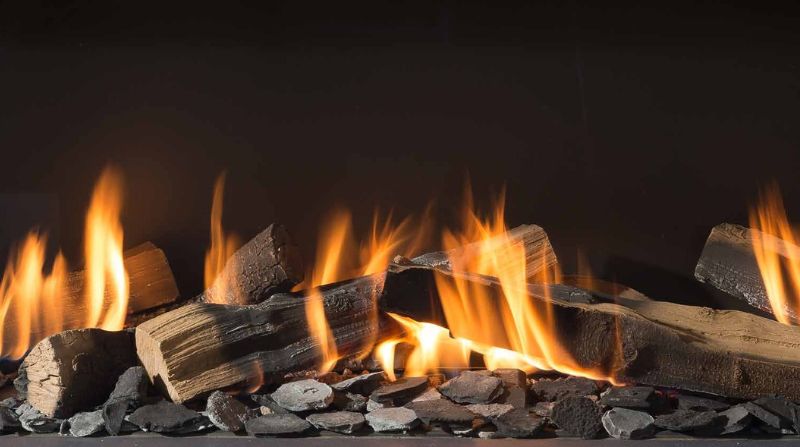 The LED light fire bed comes standard on every model in the Summum series and adds to the realistic fire effect by playing on the surfaces of the cleaved logs.